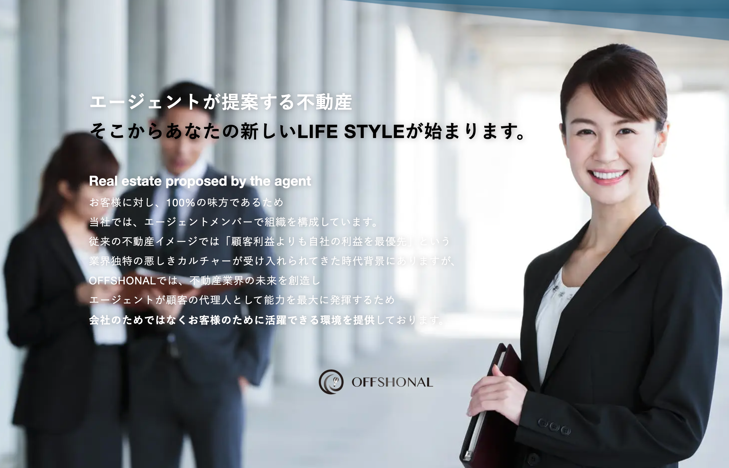 不動産を通じ、お客様の人生をより良くするのがOFFSHONALエージェントの使命です。従来の不動産業界の慣習や組織のルールに縛られることなく、自由な時間、自由な場所、自由なスタイルで、自分らしい働き方をエージェントには実践してもらいます。